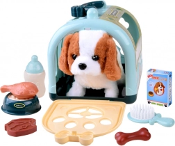 Plüschhund, tragbare Transportbox, Bürste, Fütterungsflasche, Napf mit Futter-Imitat, Knochen, Hähnchenkeule, Steak, Box mit Futter-Imitat, Aufkleber