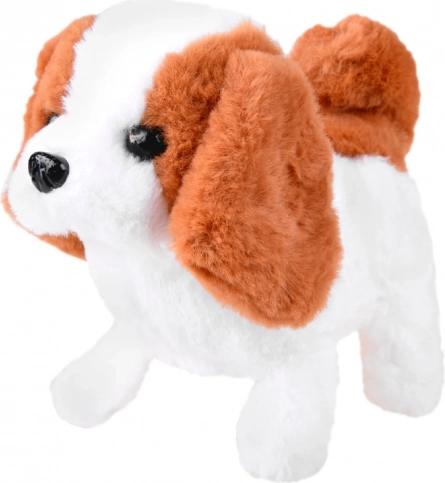 Der Hund läuft nach vorne, bellt, wedelt mit dem Schwanz und macht beim Streicheln des Kopfes sanfte Welpengeräusche – ideal für interaktives Spielen.