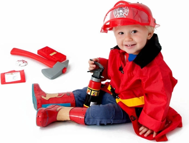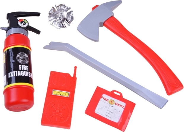 Axt, Brecheisen, Funkgerät, Abzeichen und Feuerwehr-Ausweis – kleine Retter haben alles, was sie für ein realistisches Spiel brauchen.