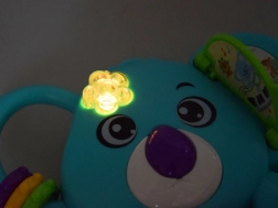 Jeder Tastendruck lässt ein Blümchen mit einem blinkenden Lämpchen aufleuchten, das die Farben wechselt und die visuelle Wahrnehmung stärkt.