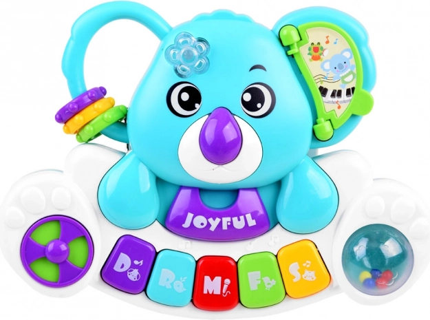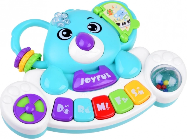 Dieses farbenfrohe Kinderklavier mit Koala-Motiv bietet vielfältige Sinnesreize und Spielspaß. Es unterstützt die Entwicklung von Hören (Melodien, Geräusche), Sehen (blinkendes, farbwechselndes Licht) sowie der Feinmotorik (Ringe, Perlen, drehbare Elemente). Dank der kompakten Maße liegt es gut in kleinen Kinderhänden und ist ideal für unterwegs.