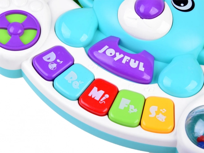 Wechseln Sie zwischen der Skala DO–SOL, fröhlichen Melodien, Tiergeräuschen und spaßigen Effekten – Kinder entwickeln ein Gefühl für Rhythmus und Klänge.