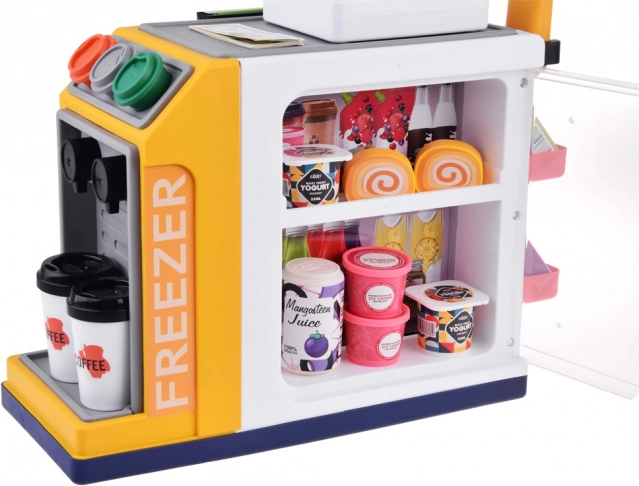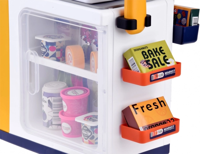 Das verschließbare Kühlfach fasst Joghurts, Säfte, Desserts und weitere Lebensmittel-Attrappen. Ideal für Café-, Laden- und Selbstbedienungs-Rollenspiele.