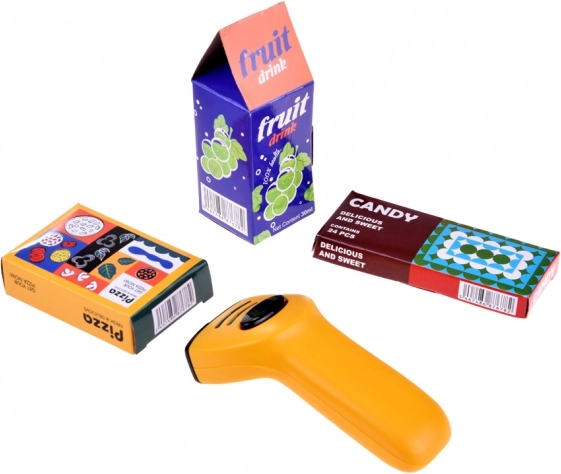 Kinder können Waren scannen, Preise eingeben und mit Karte oder „bar“ bezahlen. Die klingelnde Kasse und der Leuchtscanner unterstützen realistisches Spiel und das Erlernen einfacher Mathematik.
