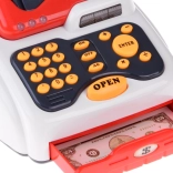 Die Kasse bietet Soundeffekte beim Drücken der Tasten und Lichteffekte dank drei farbiger LEDs. Die Geldschublade lässt sich per Knopfdruck auf „open“ öffnen.