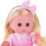Die langen blonden Haare können gekämmt und in verschiedenen Frisuren gestylt werden, ideal für kreatives Spielen.
