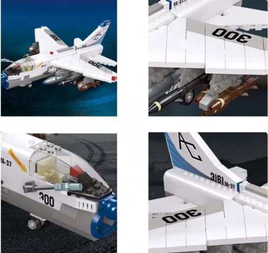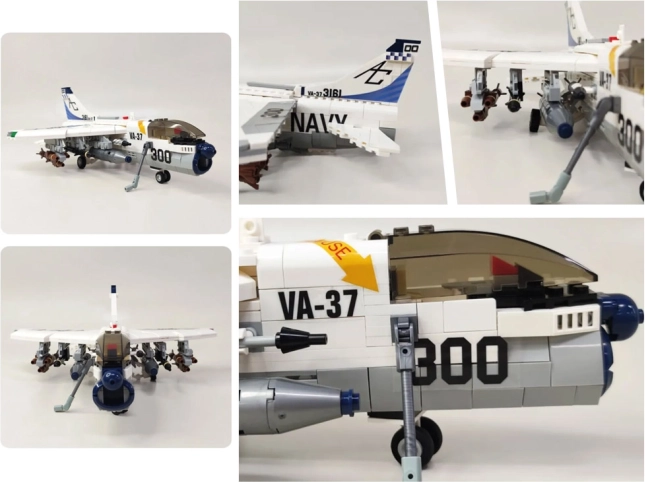 Bausatz des Angriffsflugzeugs ist ideal für alle Liebhaber von Flugmaschinen. Dieses 683-teilige Set ermöglicht den Bau eines Modells der LTV A-7 Corsair II, eines amerikanischen Unterschall-Angriffsflugzeugs.