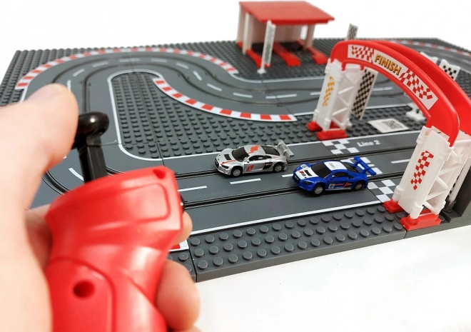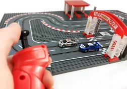 Die modulare Basis mit 15 Platten sowie Bauteilen für START/ZIEL und Parken ermöglicht es Ihnen, rund um die Strecke eigene Bauwerke aus Steinen zu errichten und den Kurs nach Belieben zu verändern.