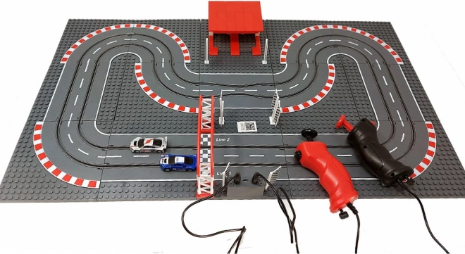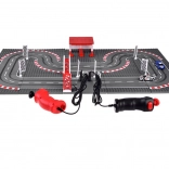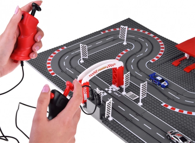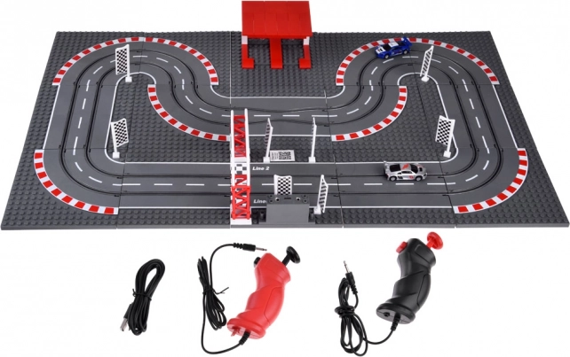 Die beiden Handregler mit stufenloser Geschwindigkeitsdosierung werden an die Station an der Bahn angeschlossen und garantieren präzise Kontrolle in Kurven wie auf Geraden. Dank USB-Stromversorgung sind keine Batterien erforderlich – einfach einstecken und losrennen. Im Lieferumfang ist alles für den schnellen Start enthalten: