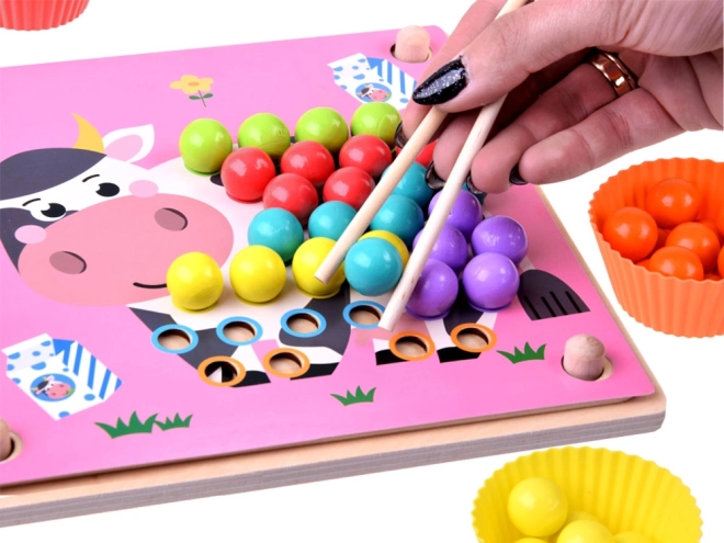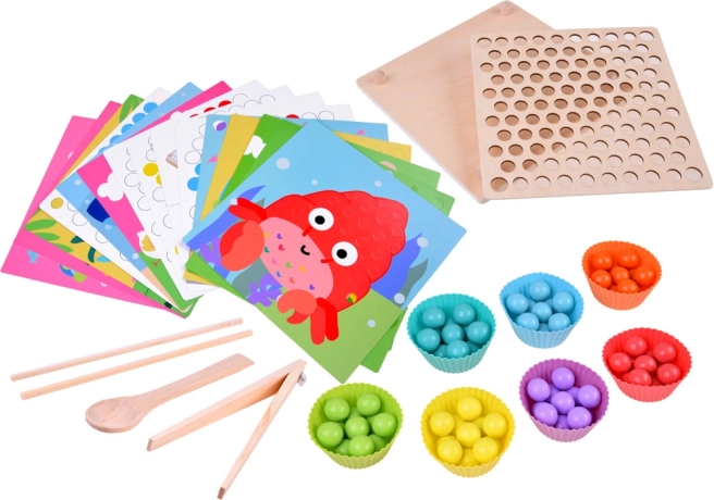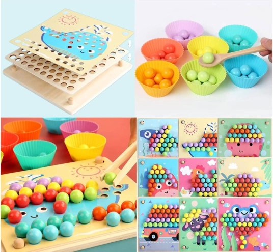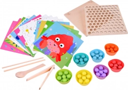 Holz-Lernmosaik für Kinder ist großartiger Spaß und ein Training für den Kopf. Dieses Set ermöglicht das Üben von Konzentration, Aufmerksamkeit, Farberkennung, Handtraining, motorischen Fähigkeiten und bringt viele positive Emotionen. Es ist ein Lernspielzeug für kleine Kinder, das hilft, Formen und Farben zu lernen, zu zählen sowie Hand-Auge-Koordination zu entwickeln.
