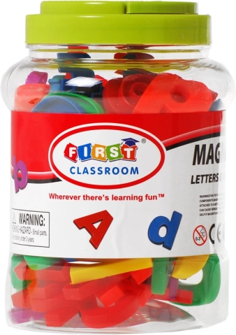 Das Set umfasst kleine und große Buchstaben sowie Zahlen und mathematische Zeichen und eignet sich daher für Vorschulkinder und jüngere Schulkinder. Die Magnete haften gut am Kühlschrank, an Magnettafeln oder anderen Metallflächen und sind ideal für gemeinsame Familienaktivitäten.
