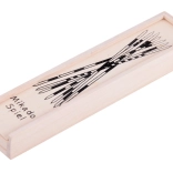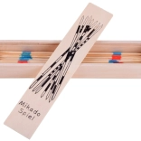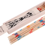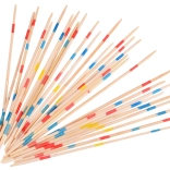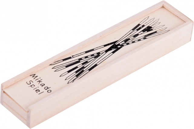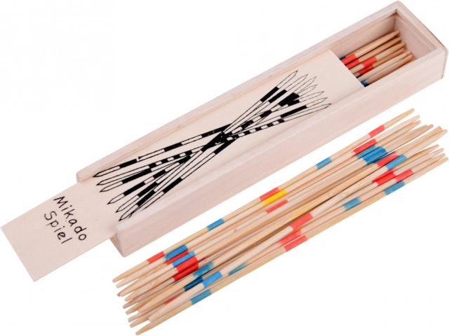 Genießen Sie zeitlosen Spielspaß mit dem Mikado aus Holz. Werfen Sie das Bündel Stäbchen auf den Tisch und heben Sie sie abwechselnd vorsichtig auf, ohne dass sich ein anderes Stäbchen bewegt. Verschiedene Farbringen geben den Punktewert an – gewonnen hat, wer die höchste Gesamtsumme erzielt.