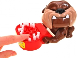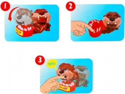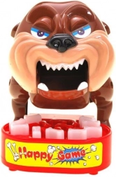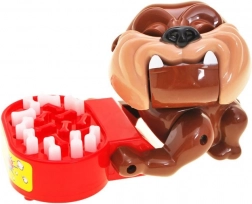 Spielregeln: Drücke die Knochen im Napf vorsichtig. Wenn du den falschen Zahn drückst, versucht der Hund, sein Futter zu schützen und beißt dich. Wenn dich der Hund beißt, scheidest du aus dem Spiel aus.