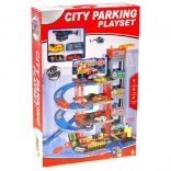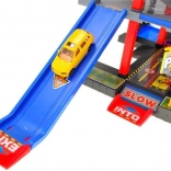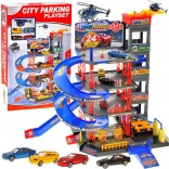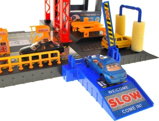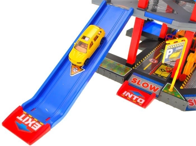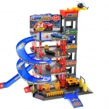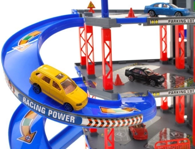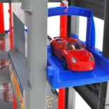 Transportieren Sie die Autos per Aufzug zwischen den Etagen und genießen Sie rasante Abfahrten über die Rampen. Realistische Details fördern Fantasie und flüssiges Spiel.