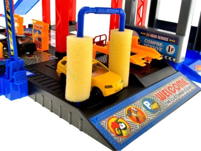 Dieses hochwertige Kunststoff-Set bietet Kindern eine komplette Stadtumgebung: ein Parkhaus mit mehreren Ebenen, einen funktionalen Aufzug zum Bewegen der Autos zwischen den Stockwerken, eine realistische Waschanlage mit „Bürsten“, eine kleine Werkstatt mit Förderer und eine Tankstelle. Obendrauf gibt es einen Helipad für die Landung des Helikopters. Dank des umfangreichen Zubehörs genießen Kinder stundenlang kreatives Spiel.