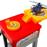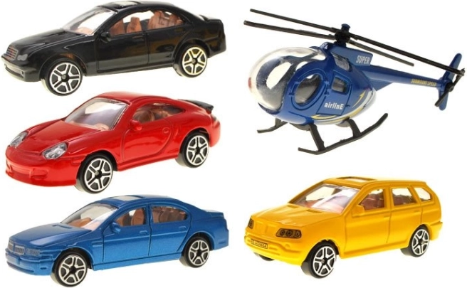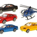 Enthalten sind 4 Metallautos und ein Metallhelikopter mit eigenem Landeplatz. Verkehrszeichen und Pylonen sorgen für realistische Verkehrsszenarien.