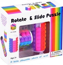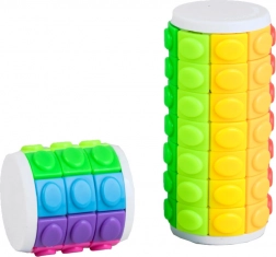 Dieses originelle Knobelspiel hat die Form eines Zylinders mit drehbaren Ringen und einem freien Feld, mit dem Sie die Elemente beliebig verschieben können. Ziel ist es, die Ebenen in gleichen Farben anzuordnen oder ein eigenes Muster zu erstellen. Im Set enthalten sind zwei Becher/Puzzles in unterschiedlichen Größen und mit unterschiedlicher Schwierigkeit: ein kleiner mit 3 Ebenen und ein größerer mit 7 Ebenen.