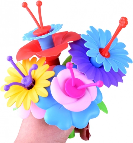 Das Spiel mit dem Blumen-Baukasten unterstützt Vorstellungskraft, Geduld und die Augen-Hand-Koordination auf spielerische Weise.