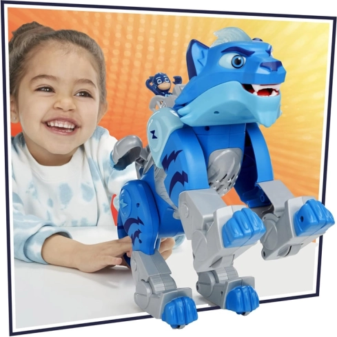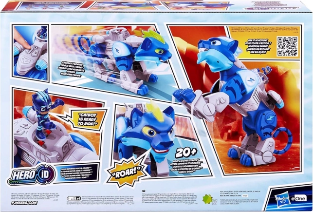 Die Funktionen umfassen bewegliche Gliedmaßen zur Simulation von Kämpfen, durch Tasten aktivierbare Geräusche und die Hasbro Hero ID Technologie, die andere Charaktere aus der PJ Masks Serie erkennt. Dieses Spielzeug ist so konzipiert, dass es fantasievolles Spielen fördert und die Kreativität der Kinder entfaltet.