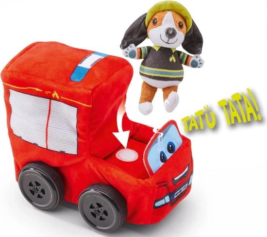 Das Feuerwehrfahrzeug ist auch mit Soundeffekten ausgestattet. Beim Drücken des Plüschhundes sind Motor- und Sirenengeräusche zu hören. Die Fernbedienung ermöglicht die Betätigung der Hupe. Der Plüschhund kann losgelöst werden, was den Kindern erlaubt, verschiedene Geschichten zu erfinden.