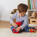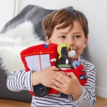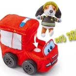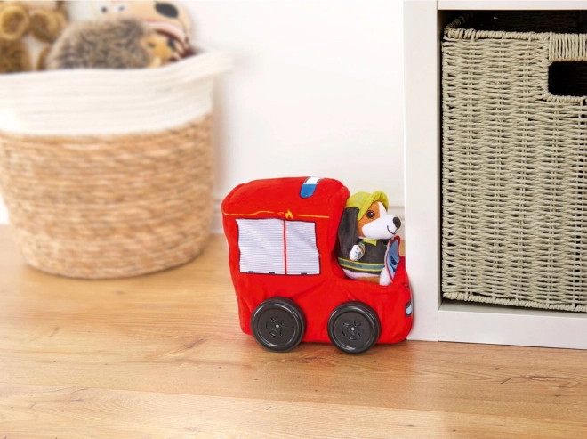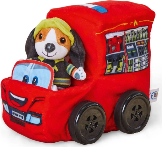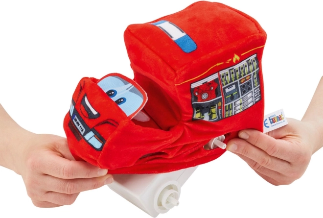 Das Fahrgestell dieses Feuerwehrfahrzeugs besteht aus Kunststoff, während die Karosserie aus weichem Plüsch besteht, was mehrere Vorteile bietet: