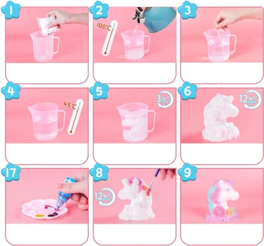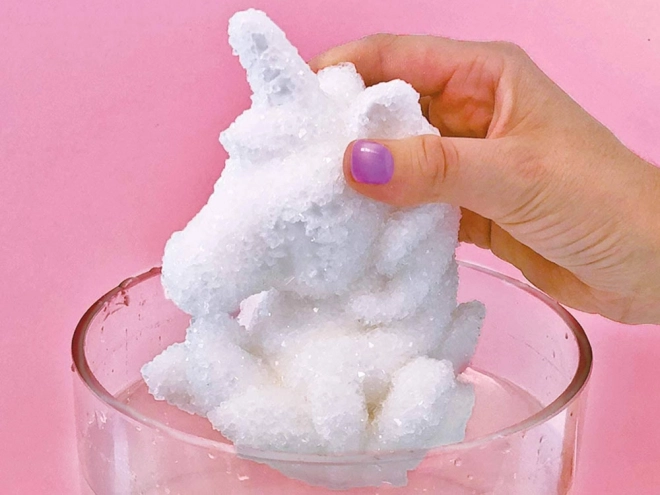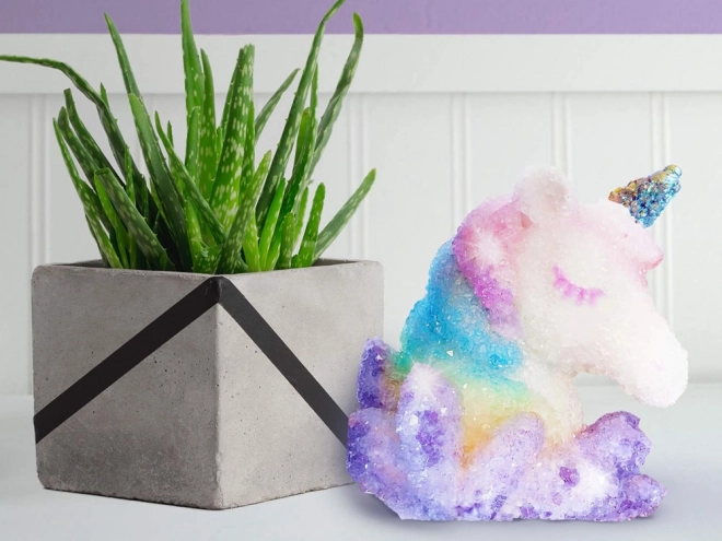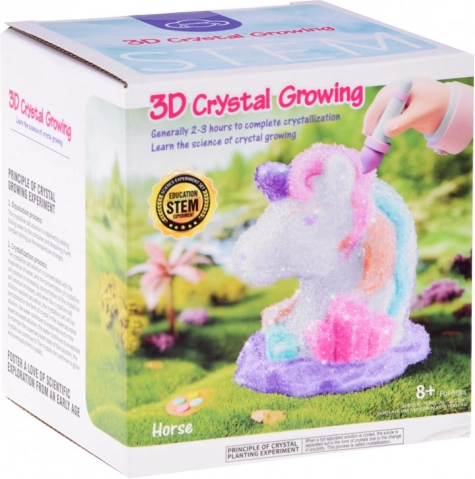 Tauchen Sie die Figur in die vorbereitete Lösung und beobachten Sie, wie Kristalle darauf zu wachsen beginnen. Nach dem Trocknen kann das Einhorn nach eigenem Ermessen bemalt werden, was endlose Möglichkeiten bietet und das kreative Denken der Kinder stärkt.