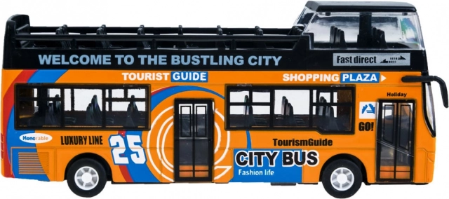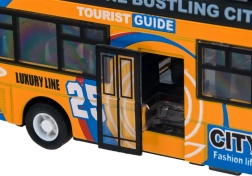 Dieses detailreich gestaltete Modell eines städtischen Doppeldeckerbusses begeistert jedes Kind. Die robuste Kombination aus Metall und Kunststoff sorgt für Langlebigkeit, während die öffnenden Schiebetüren und die Innenbeleuchtung ein authentisches Fahrerlebnis vermitteln.