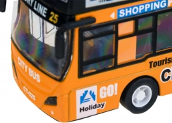 Beim Drücken auf das Chassis werden Motorstart-, Fahr- und Hupgeräusche aktiviert; gleichzeitig blinken die Frontlichter und der Innenraum leuchtet. Dank des Schwungantriebs (Pull-Back) fährt der Bus nach dem Aufziehen von selbst los – ideal für selbstständiges und gemeinsames Spiel.