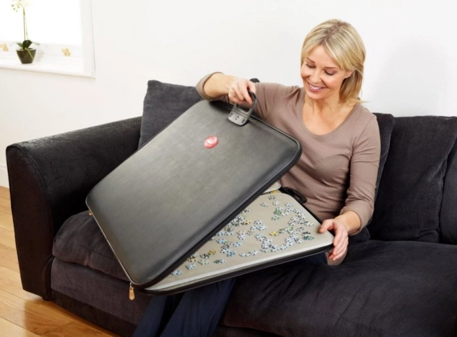 Die leichte und robuste Mappe im Kofferstil lässt sich problemlos von Raum zu Raum und auf Reisen transportieren, ohne dass sich die Puzzleteile vermischen.