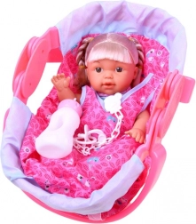 Das Set enthält eine Kunststoffpuppe mit beweglichen Gliedmaßen und einem gummierten Gesicht. Die Trage besteht aus hochwertigem Kunststoff mit beweglichen Griffen und Gurten zur Befestigung, zum Beispiel an Gepäck. Passt perfekt in jedes Kinderzimmer. Durch die ausreichende Größe der Trage kann eine Puppe bis zu einer Höhe von 30 cm hineingestellt werden!