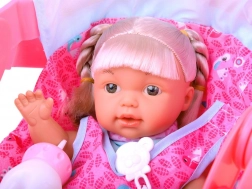 Die Puppe kann verschiedene Geräusche machen: Lachen, Mama, Brabbeln, Baba, Küsschen, Weinen, Freude, Niesen und Rülpsen.
