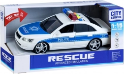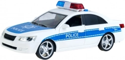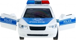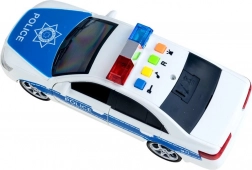 Realistisches Polizeiauto mit Details wie blauen und roten Lichtern und den Aufschriften 'POLIZEI'.
