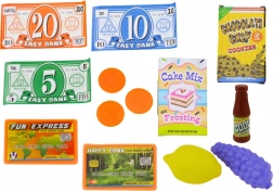 Das Set umfasst Spielgeld, Scheine, Münzen und Zahlungskarten, was eine hervorragende Gelegenheit bietet, das Zählen von Geld und die Entwicklung interpersoneller Fähigkeiten durch die Simulation von Geschäftsinteraktionen zu erlernen.