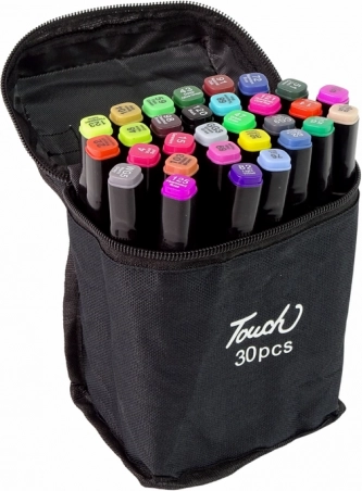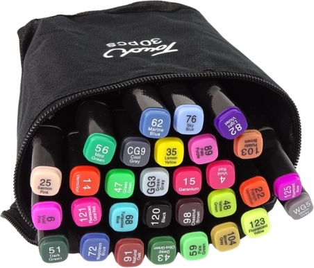 Das Set von 30 Touch-Stiften bietet eine breite Farbpalette mit intensiver Pigmentierung durch alkoholische Tinte, die satte und beständige Zeichnungen gewährleistet. Die Stifte verfügen über zwei Spitzen – eine breite, flache für große Flächen und eine feine für Details, was kreative Möglichkeiten beim Zeichnen bietet. Die Spitzen sind aus strapazierfähigem Material gefertigt und der Tintenfluss ist gleichmäßig verteilt, sodass kein Austrocknen oder Auslaufen zu befürchten ist.