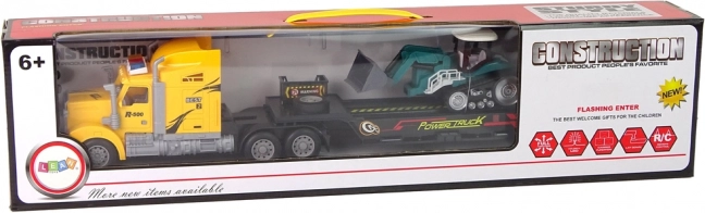 Die Sattelzugmaschine mit Anhänger ermöglicht kleinen Baumeistern, Maschinen und Material wie in echt zu transportieren. Der Truck wird per Fernbedienung gesteuert, sodass sich bequem vorwärts, rückwärts und lenken lässt, während die LED-Leuchten auf dem Dach für einen attraktiven Fahreffekt sorgen. Der Kettenbagger mit abnehmbarem Anhänger ergänzt Bauszenarien perfekt und erweitert die Spielmöglichkeiten.