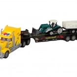 Der Tieflader-Anhänger und der abnehmbare Zusatzanhänger ermöglichen den sicheren Transport von Arbeitsmaschinen und Ladung. Perfekt, um realen Baustellenverkehr zu simulieren.