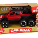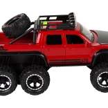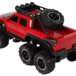 Auf ins Abenteuer mit dem roten 6x6-Geländewagen im Maßstab 1:16. Dank des Schwungradantriebs genügt ein Anschubsen und das Fahrzeug fährt sofort los – ganz ohne Fahrbatterien. Sechs große Gummireifen bieten sicheren Grip auf verschiedenen Untergründen, und die robuste Kunststoffkarosserie meistert auch wildere Offroad-Einsätze.