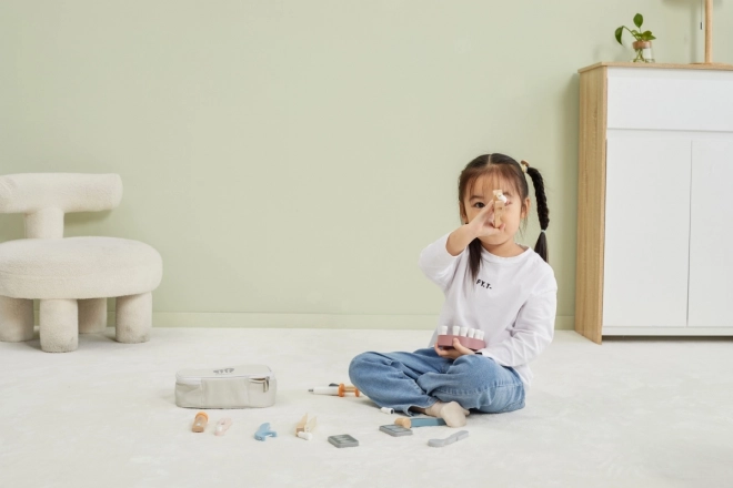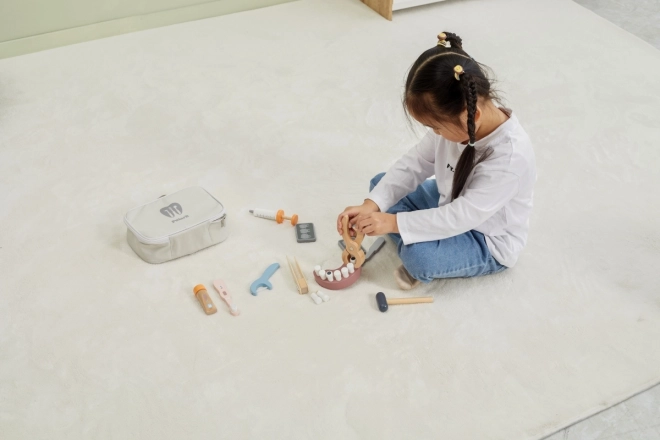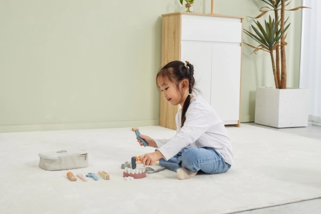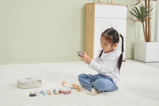 Alles ist in der robusten Tragetasche verstaut, sodass das Set leicht zu transportieren und aufzuräumen ist. Hochwertiges lackiertes Holz und ungiftige Farben sorgen für sicheren, langlebigen Spielspaß. Ein ideales Geschenk für kleine Zahnärztinnen und Zahnärzte.