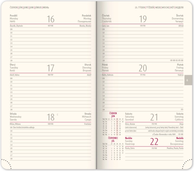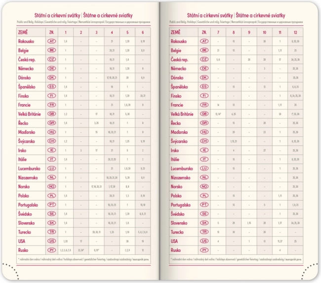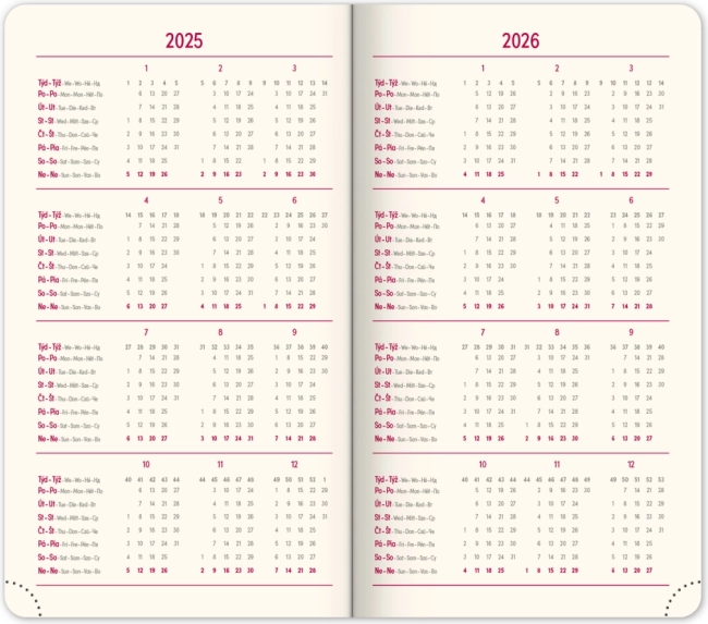 Der Notique Taschenkalender Diamante 2025 besticht durch das kompakte Format 9 × 15,5 cm und das elegante rote Design. Er bietet eine Wochenübersicht mit tschechisch‑slowakischem Kalendarium sowie zusätzlichem Englisch, Deutsch, Ungarisch und Russisch. Dank übersichtlicher Planer und praktischer Details behalten Sie Ihre Aufgaben und Termine stets im Griff.