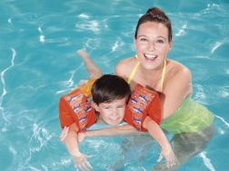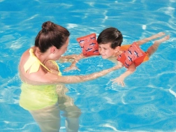 Die Schwimmflügel sind ausschließlich für die Verwendung im Wasser vorgesehen, in einer Tiefe, in der das Kind den Boden erreichen kann, und stets unter Aufsicht einer erwachsenen Person.