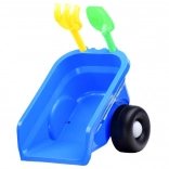 Der abnehmbare Anhänger mit Halterungen für Werkzeuge und der mitgelieferten Schaufel und Harke unterstützt die Fantasie und das Spielen im Garten und zu Hause.