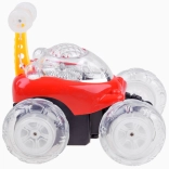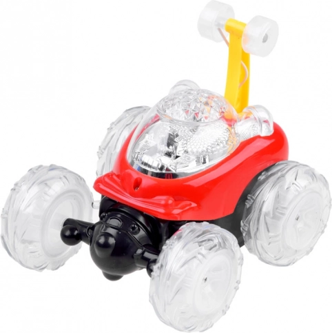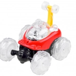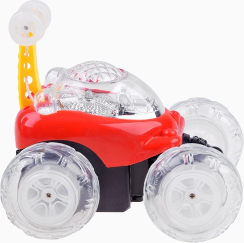 Das Mini-Stuntauto ist für verrückte Tricks und flüssige Drehungen konzipiert. Die Vorderachse ermöglicht freies Wirbeln und Rotieren, sodass eindrucksvolle 360°-Spins gelingen. Die transparenten, leuchtenden Räder erzeugen während der Fahrt beeindruckende Lichteffekte, die Kinder und Erwachsene begeistern.