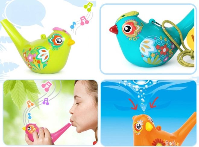 Gießen Sie etwas Wasser in die Öffnung am Kopf des Vogels und genießen Sie sanftes Zwitschern in verschiedenen Tonhöhen.