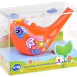 Diese Wasserpfeife in Vogelgestalt ist leicht, robust und ideal für Kinder. Ohne Wasser erzeugt sie einen klaren, hellen Ton; nach dem Befüllen mit einer kleinen Menge Wasser beginnt der Vogel melodisch zu zwitschern. Lautstärke und Tonhöhe lassen sich einfach über die Menge des Wassers und die Stärke des Blasens beeinflussen.