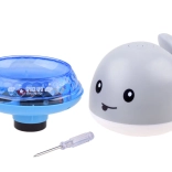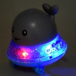 Außerhalb des Wassers setzen Sie den Wal auf die Plattform, schalten on/off um und beobachten die Fahrt im Takt fröhlicher Musik mit Lichteffekten.
