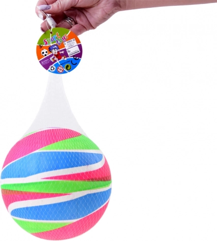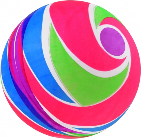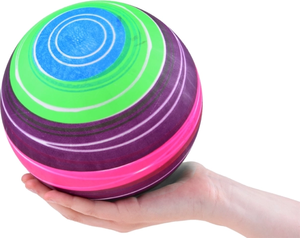 Der Ball hat leuchtende Regenbogenfarben, die sowohl Kinder als auch Erwachsene begeistern.