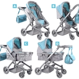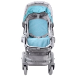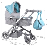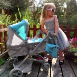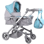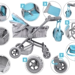 Zur praktischen Ausstattung gehören ein klappbares Verdeck, eine verstellbare und weich gepolsterte Schiebestange, Sicherheitsgurte für die Puppe, ein geräumiger Unterkorb sowie eine passende abnehmbare Tasche für das Nötigste. Die Vollräder aus EVA sind leise und pflegeleicht.