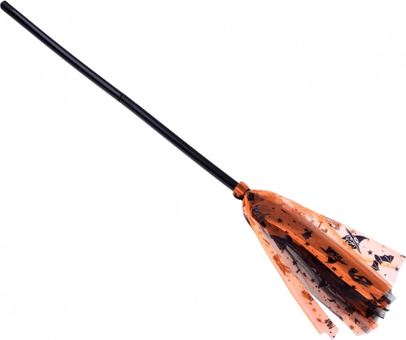 Der Besen mit Kunststoffgriff und textilen Quasten in orange-schwarzen Farben rundet das Kostüm ab und ist ideal zum Spielen und Fotografieren.