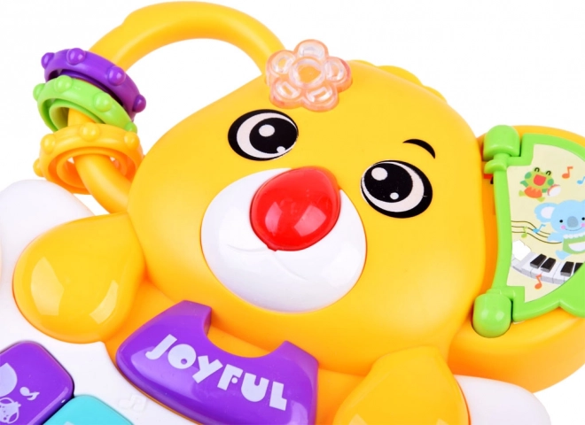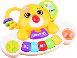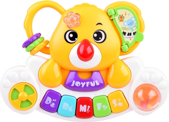 Dieses bunte interaktive Klavier verbindet Lernen und Spaß. Kinder lernen die grundlegende Tonleiter Do–So kennen, hören fröhliche Melodien und authentische Tiergeräusche (Hund, Hahn, Pferd, Katze, Elefant). Jeder Tastendruck wird von einem blinkenden Lämpchen begleitet, das die Farbe wechselt und die visuelle Wahrnehmung fördert.