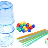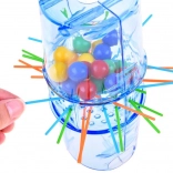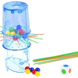 Trick Stick ist das ideale Spiel für diejenigen, die Konzentration und Strategie lieben. Die Spieler platzieren abwechselnd bunte Stäbchen in den Turm und schütten dann bunte Kugeln hinein. Der Gewinner ist derjenige, der bleibt, ohne dass Kugeln gefallen sind!